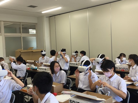 令和3年7月19日(月)13:00~15:00に、「自然科学実験セミナー 体験講座(VR)」を開催し、1・2年生の希望者28名が参加しました。