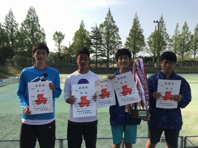4月28日(日)、29日(日)米子どらドラパークテニス場で開催されていた中国高校県予選で見事橋川蒼生君が男子シングルスで優勝しました。また、ダブルスにおいては浦木・橋川組が準優勝、田中・松本組がベスト4と見事な結果でした。