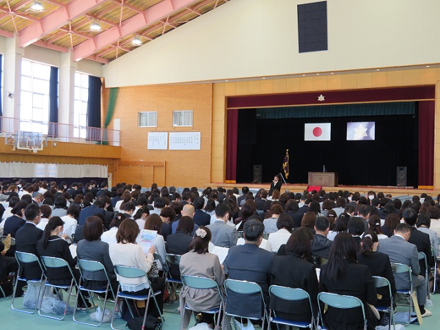 入学式に引き続き、入学式と同じく式次第を短縮してPTA入会式を行いました。換気を徹底しながら例年より時間を短縮して行いました。